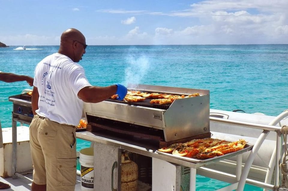 Après la plongée, vous savourerez un délicieux déjeuner barbecue servi à bord ou sur la plage, accompagné d’un menu trois plats et d’une sélection de boissons locales, incluant boissons sans alcool, jus, eau, bière, vin et rhum local.